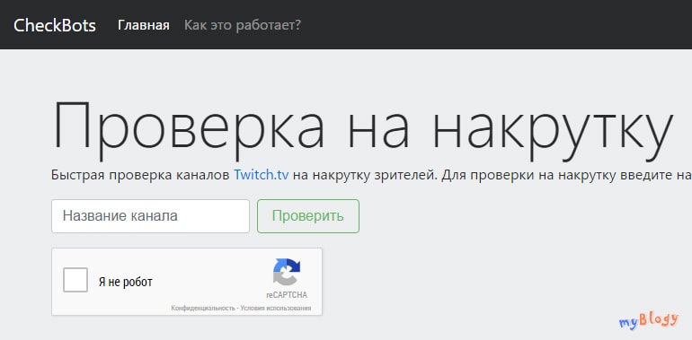 На главной странице сайта введите в поле «Название канала» имя канала (имя профиля), введите капчу и нажмите «Проверить«. Стрим, разумеется, должен быть запущен.
